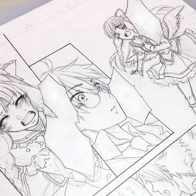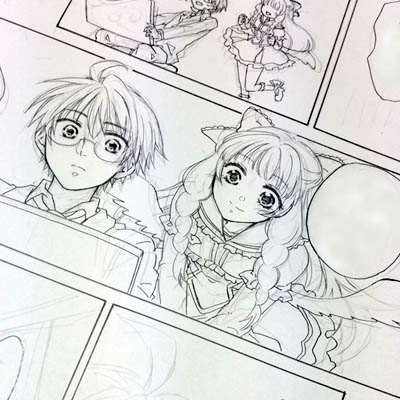 2015/11/28 Category : まんが甲子園スカウト制度 スカウト制度第2回 経過報告8 〆切まで→残り5日現在→ペン入れ中やっと半分ほどペン入れが終わったところですペン入れに入ってまでコマ直したり下書きやり直したり今回ちょっとこだわりすぎ!!いや、でもその甲斐あって今回の作品好きですキャラの中身をしっかり作ったおかげかみんなめっちゃ可愛い。キャラとして愛おしい。・付けペン変更点前はミニキャラかそうでないかという丸ペンGペンの使い分けでした。今回からは髪の毛&表情が丸ペン。それ以外はGペン。という使い分けに変更。 ▼これが前回のペン入れ ▼今回のペン入れ こうして比較してみると細い線と太い線が良い感じに絵の表情として出てきてる気がします。絵を華やかに、ということだったので髪の毛や服の動き、瞳の描き込み方を意識して変えています。あと、少しずつですがつけペンに慣れてきました。・・・・慣れてきたからこそ最初にペン入れした1~2ページをものすっっっごくやり直したい。(時間あれば直したいけどきっと時間ない)さて、あと1週間もありません。 この子達がちゃんと笑顔のハッピーエンドになるところまで描いてあげないと…!!というキャラへの愛と使命感で頑張りたいと思います(°▽°) [0回]PR Comment0 Comment Comment Form お名前name タイトルtitle メールアドレスmail address URLurl コメントcomment パスワードpassword