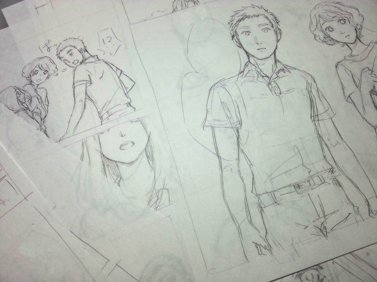 2015/09/05 Category : まんが甲子園スカウト制度 スカウト制度 経過報告 第5回 〆切まで→残り11日現在→ペン入れ中 無事に下書きも終わりました! 人間やれば出来るもんです びっくりです あ、でも表紙は一番最後に 描こうと思っているので まだ着手していません。 ちなみにですが 私は別紙に下書きしてから 原稿用紙にトレースするカタチで 作業を進めています。 ↓こんな感じ(コピー用紙/下書き途中の写メ) 次の土日には ベタ、トーン、ホワイトの作業を がっつりやりたいので ペン入れは来週金曜日まで、ですかね。 自分なりの工程〆切を 決めておくようにしています。 そうしないと、細かい所をずるずると 直し続けてしまうので…(゚▽゚) そうそう 授業中に下書きしようと 思ってたんですが無理でした。 やっぱり授業中は 授業に集中してしまいます…。 でも学校行きつつも 1日8ページ下書きをするのは 可能だということが分かって 良い経験になりました。 ※ブログまじめに更新しようキャンペーンなう [1回]